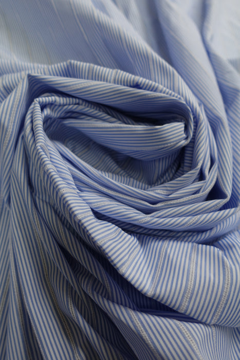 Blue And White Cotton Blend Stripe Fabric -3.2 Metres