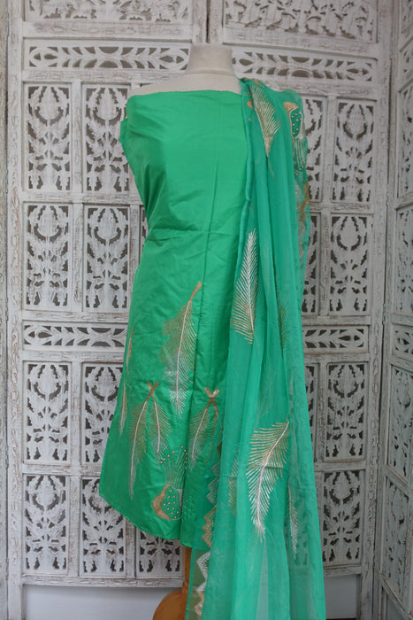 Light Mint Green Pure Silk Suit With Matching Dupatta - New