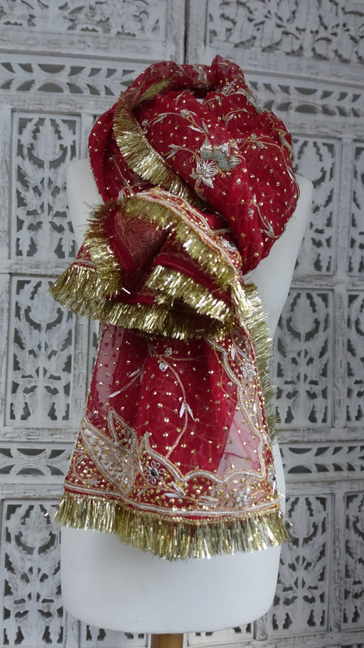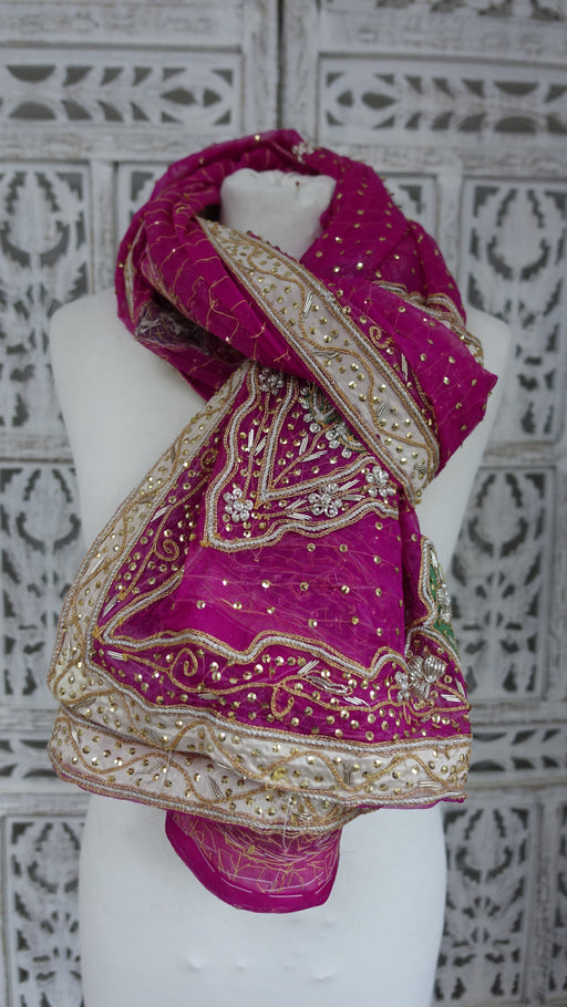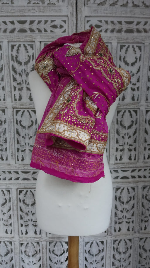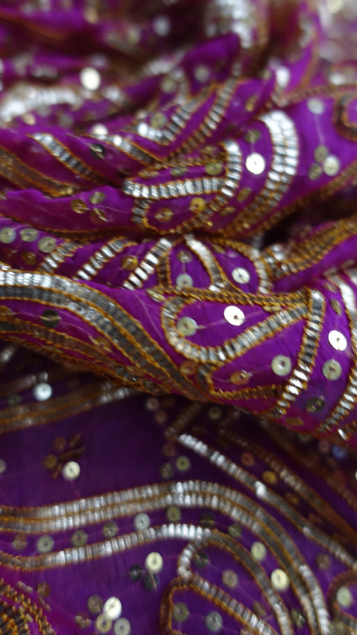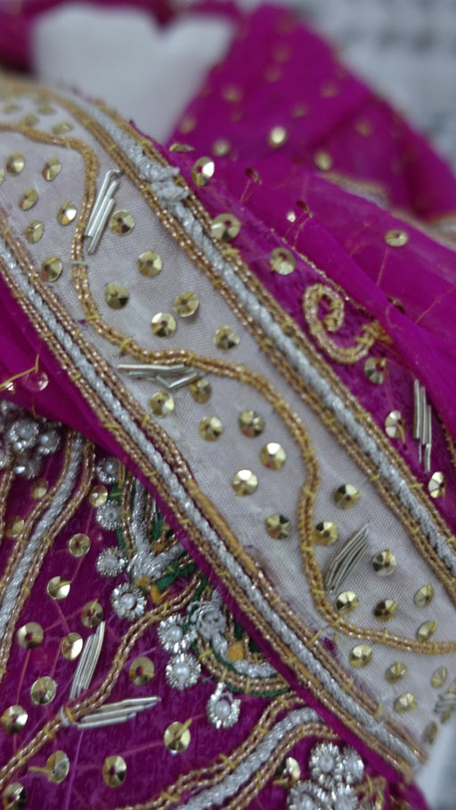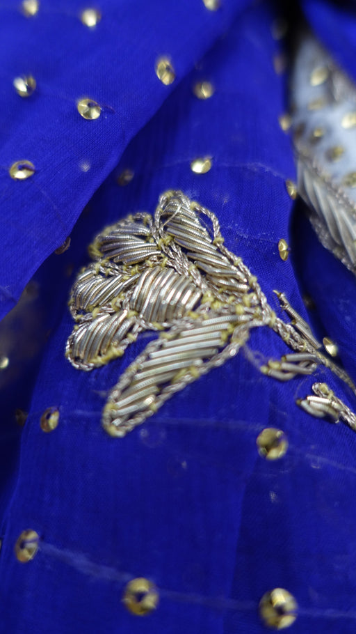 Description: Fabric – vintage pure silk with delicate zardosi, beading and sequins. It has large embellished motifs on both sides which include z...