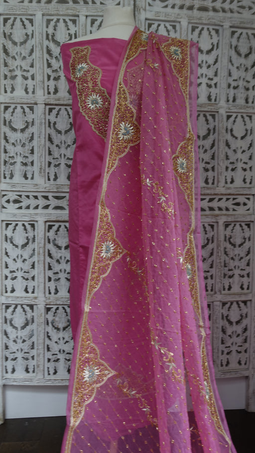 View full detailsPink Crepe Vintage Unstitched Suit With Matching Dupatta - New