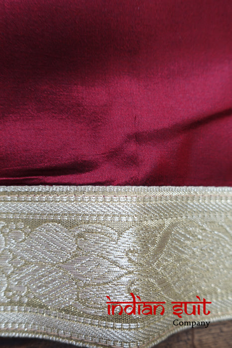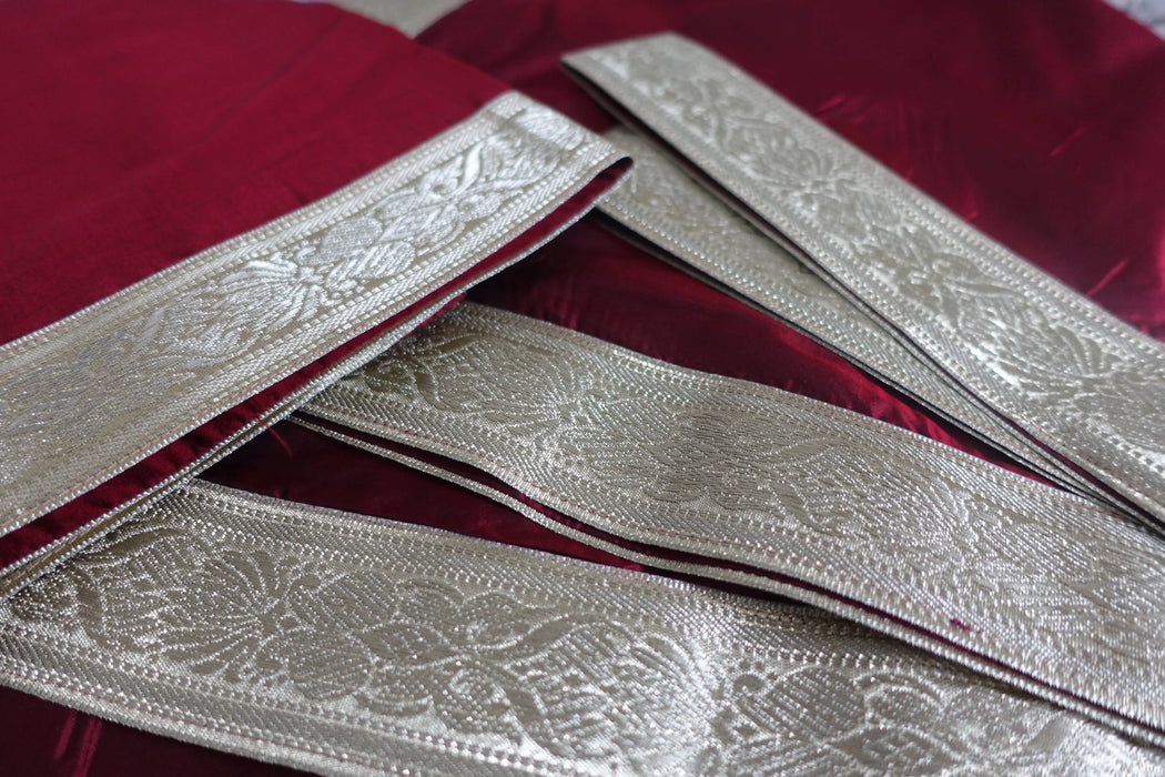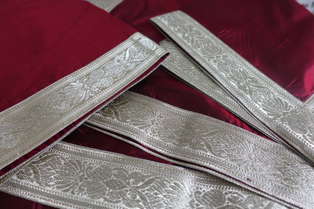 Dark Red Silk With Gold Braid Trim Tablecloth