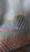 Product detail – this is a loose weave cotton dupatta, the edges are finished with a contrasting blue/ pink / white stripe edging