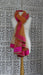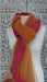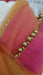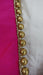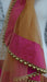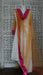Product detail – this is a fine net dupatta with a bright pink fabric edge finished with matt gold bead trimming.