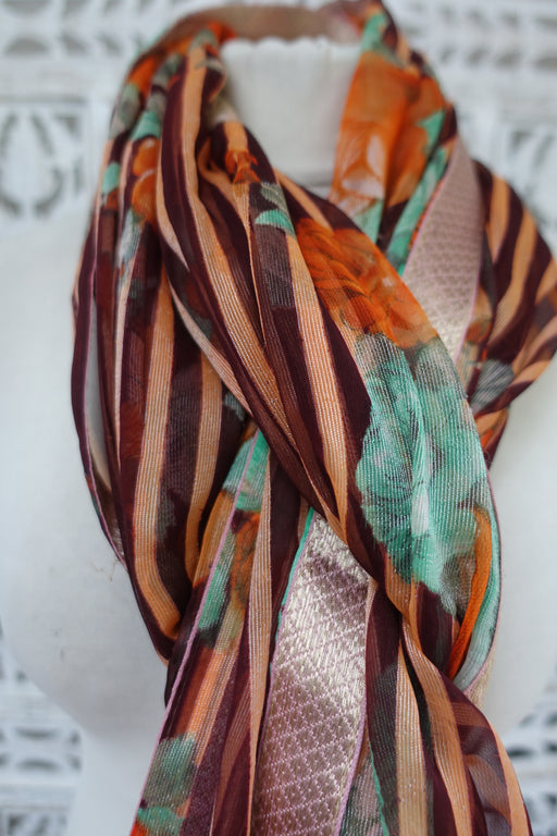 Brown Chiffon Vintage Dupatta With Silver Tilla - Preloved