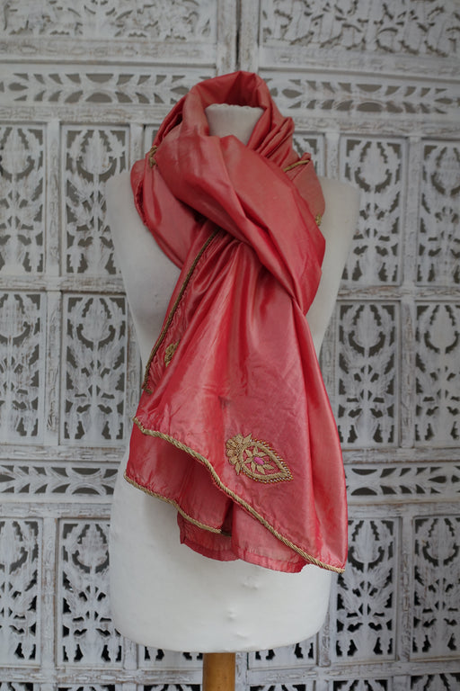 Peach Vintage Silk Zardosi Dupatta - Preloved
