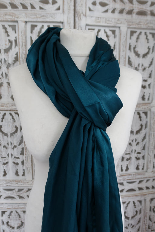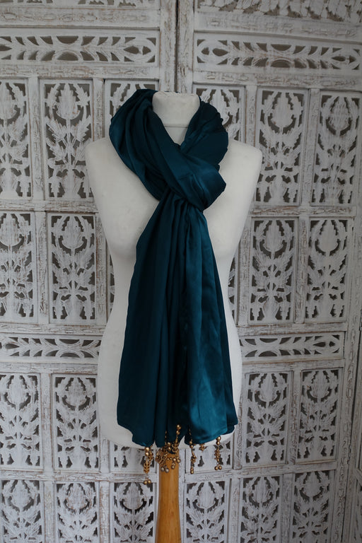 Teal Sateen Dupatta With Gold Bead Trims - New