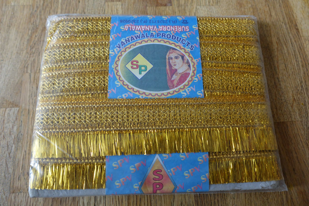 This is a new pack of gold braid, it is around 7cm wide, with around 20 metres on the pack.