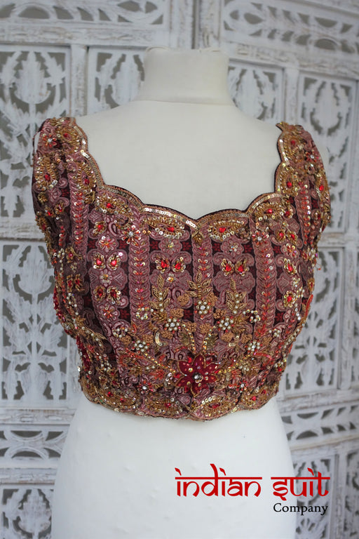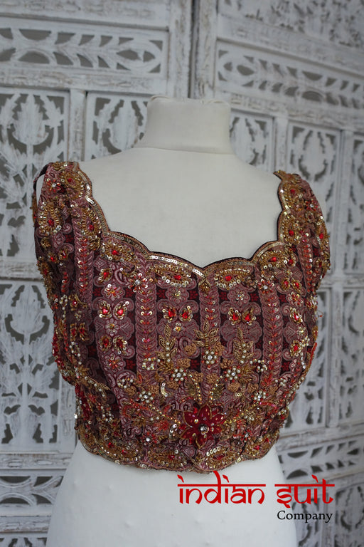 This is a pure banarsi brocade choli top with lots of fine dhabka detailing, sequins, some velvet work as well as hundreds of little beads. It has ...