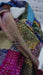 Product detail – This 100% silk piece features a complex patchwork of traditional patterns, including floral and geometric motifs in jewel tones. Each panel is secured with classic Kantha running stitches, creating a beautiful, multi-layered drape.