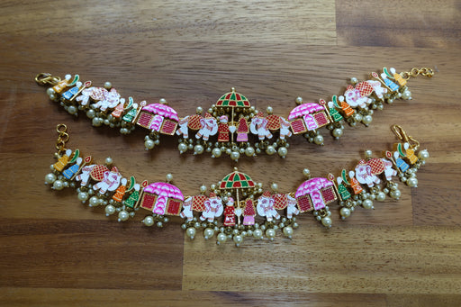 This is a stunning pair of copper base Rajasthani anklets, they are multi-coloured & vibrant, they'll add a touch of traditional elegance to yo...