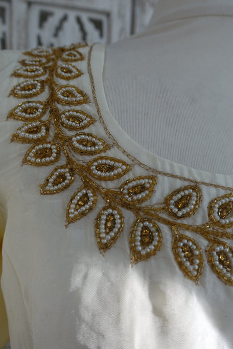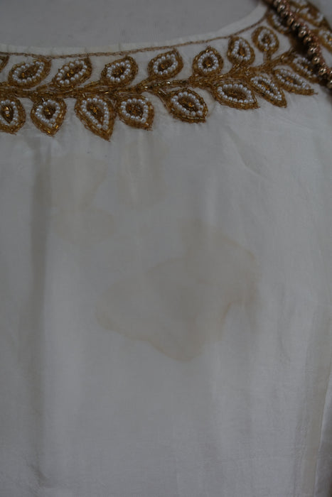 Kameez is plain , lined in poly cotton and embellished with lots of gold and pearl beads, has a drink mark on the front.