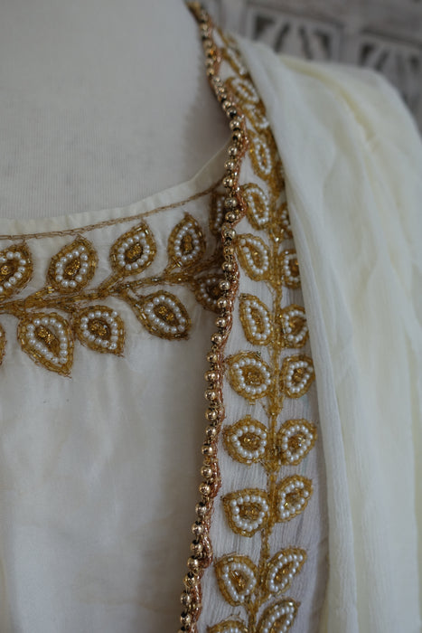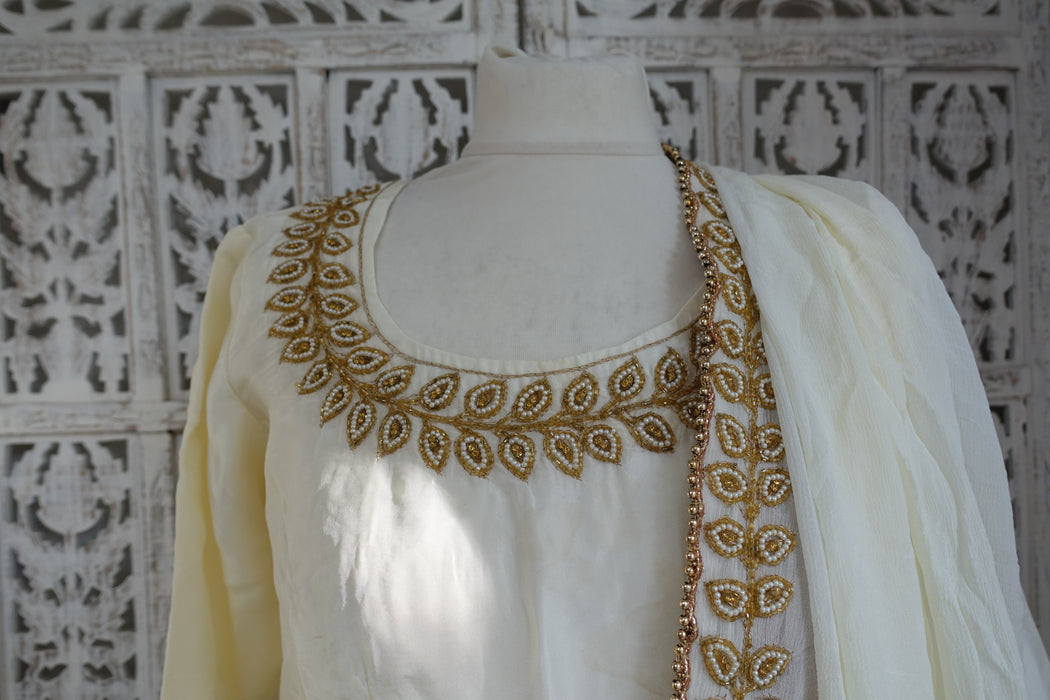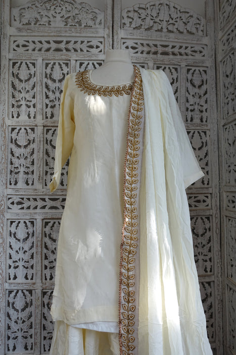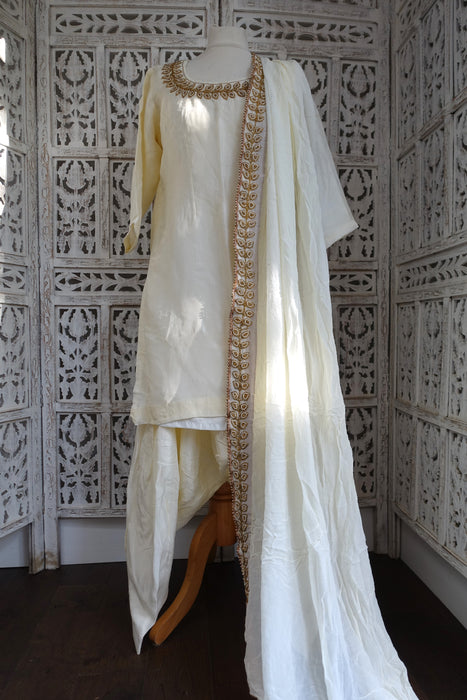 Cream Chanderi Silk Salwar Kameez - UK 16 / EU 42 - New