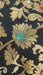 This is a black brocade sari blouse made from a rich, textured fabric. The blouse is adorned with an elaborate woven design featuring metallic gold floral and paisley patterns. The intricate motif includes small, colourful details in green and red, adding depth to the design.