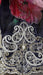 Dupatta is made of a printed floral silk voile and has the same silver and pearl detailing in a 3” wide border all around the outer edges.