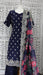 Navy Bue Floral Crepe Silk Salwar Kameez - UK 16/EU 42 - Preloved