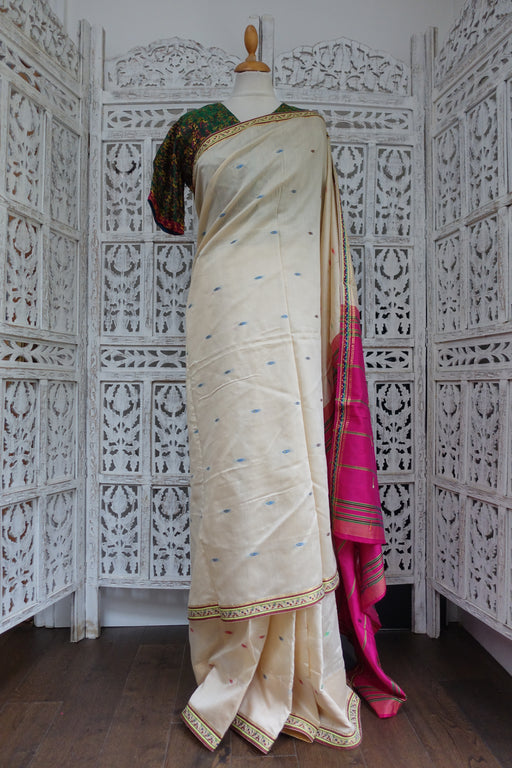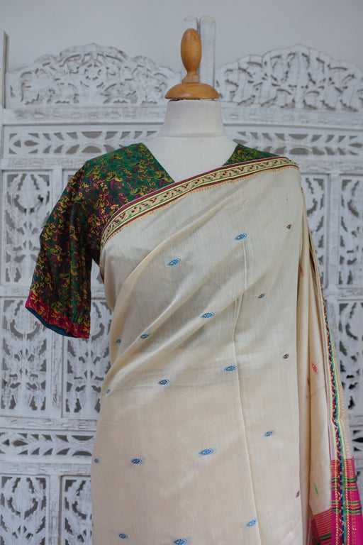 View full detailsCream Cotton Silk Sari With 38 Bust Blouse - New