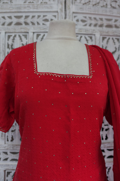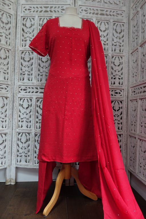 View full detailsRed Silk Salwar Kameez - UK 14/EU 40 - Preloved