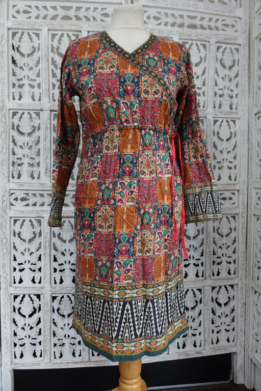Multi Coloured Cotton Print Crossover Tunic 12 EU 38 - Preloved