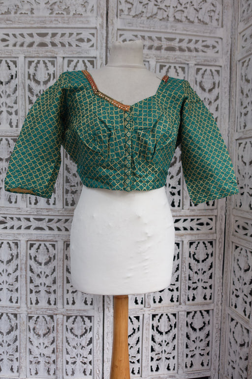 This is a vintage hand worked cotton sari blouse, it has colourful mirror and embroidery work detailing on the arms and back of the blouse. This is...