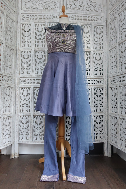 Grey Pure Silk Designer Churidaar - Size UK 8 EU 34 - New