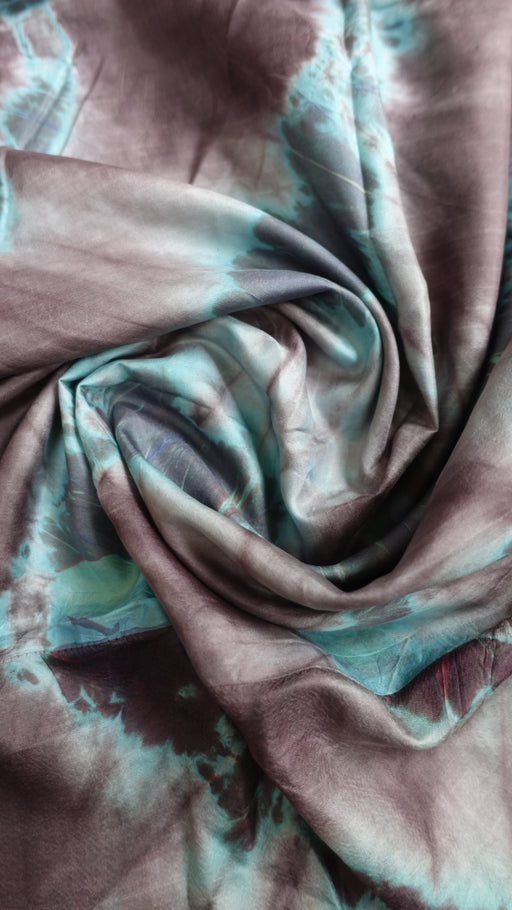 Make a sophisticated statement with this gorgeous pure silk tie-dye scarf. This piece features a dramatic, diagonal tie-dye pattern that merges ric...
