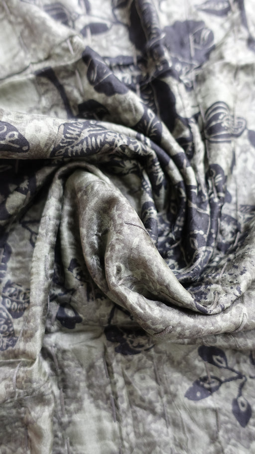 View full detailsOlive Green And Silver Pure Silk Panels Hand Stitched Scarf