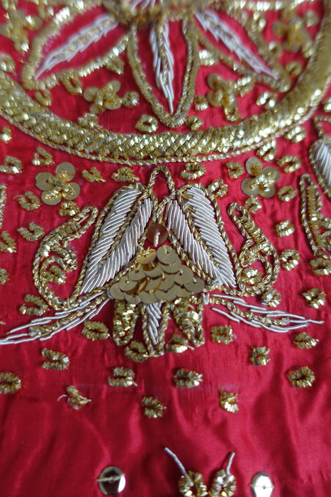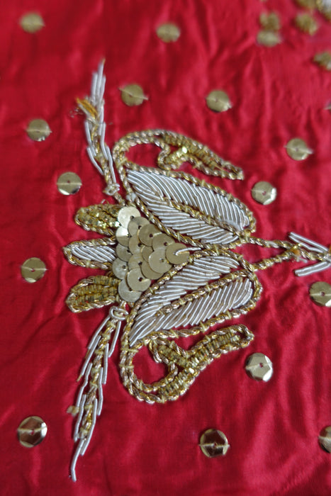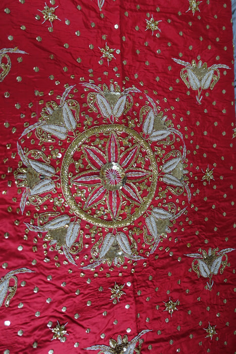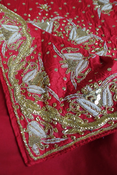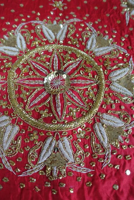 Red Silk Heavy Embellished Tablecloth - New