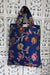 Description: blue banarsi floral regal print with cotton lining. It has short handles.