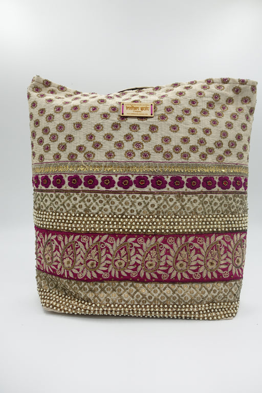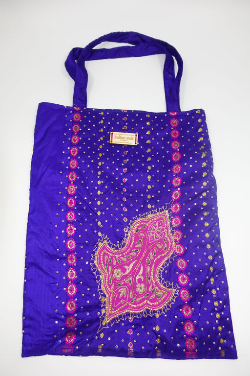Purple Silk Embellished Tote Bag - New