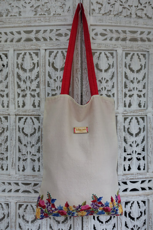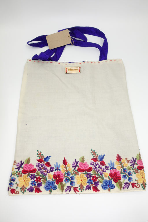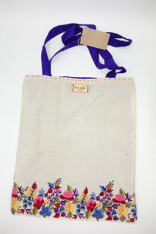 This is a soft cotton tote bag with pink and blue embroidery detailing on one side and lesser detailing on the other. Outer fabric : cotton Inner f...