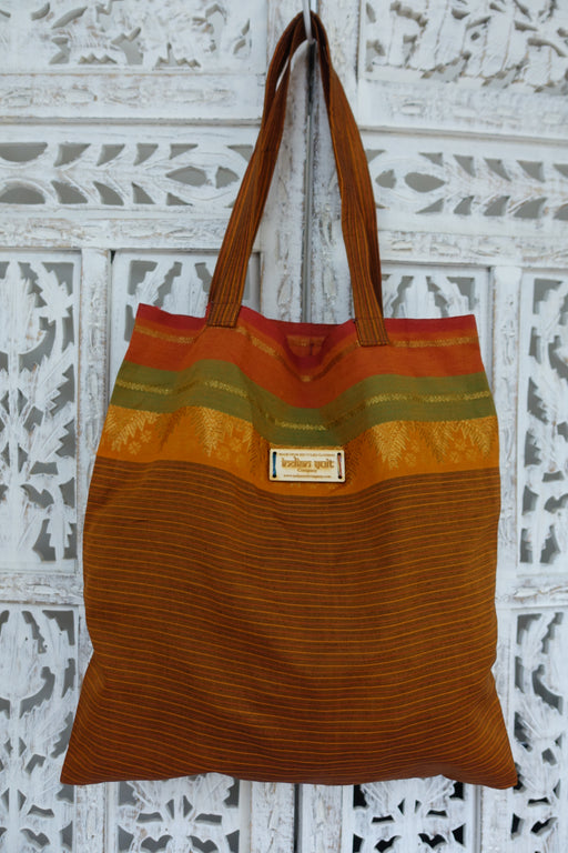 Shades Of Brown Rust Unlined Cotton Silk Bag - New