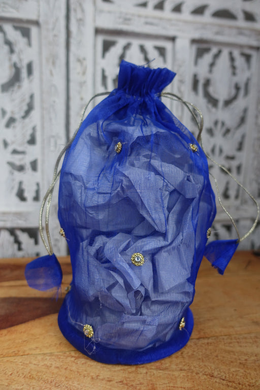 This is a plain silk unlined gift bag with gold braid handles. Material – silk blend Handles – 22cm x 3.5cm wide Width – 24cm Height – 27cm Handmad...