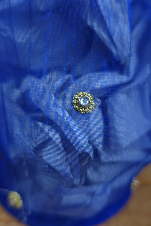 This is made of a soft blue silk and has sparkling diamante and zardosi work on it. It is lined in contrasting grey and gold paisley silk blend. It...