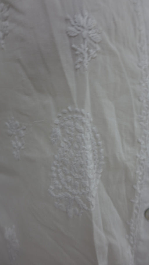 This is a plain sheer chiffon kurta with white thread work embroidery. This is brand new in excellent condition. Measurements taken with the garme...