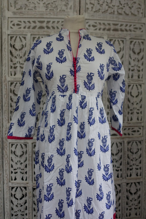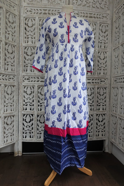 Blue White Cotton Printed Loose Fitting Frock - 12 EU 38 - New