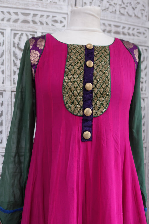 Magenta Chiffon Kundan Frock - 10 EU 36 - New