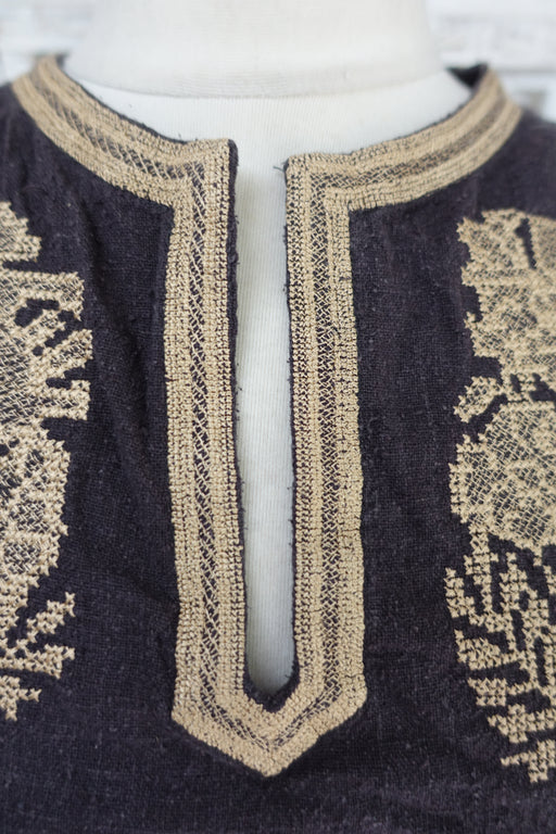 Silk linen mix with beige embroidery work in a partial cross stitch style. Has side vents, similar detailing on the back Has a belt to fasten New i...