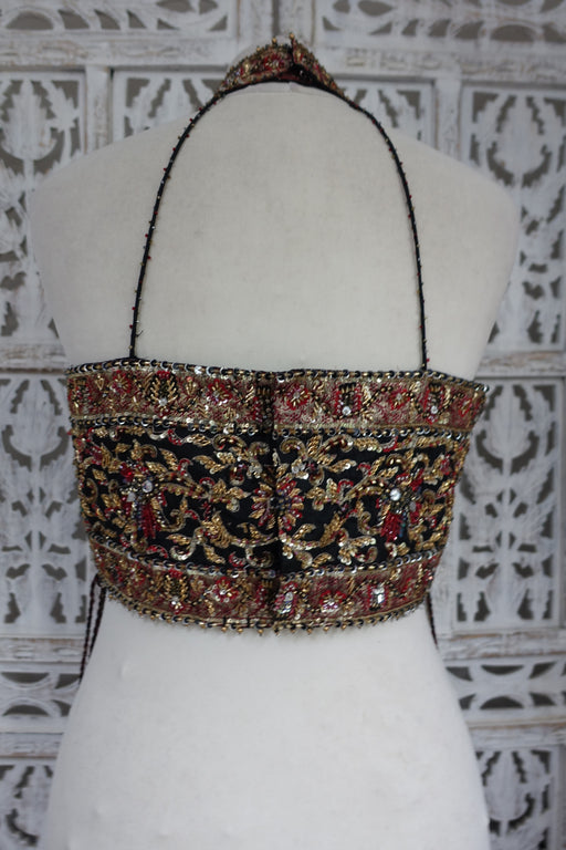 Black Halter Neck Embellished Top - UK 8 / EU 34 - Preloved