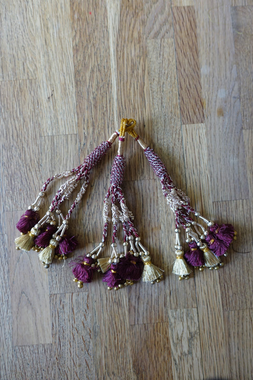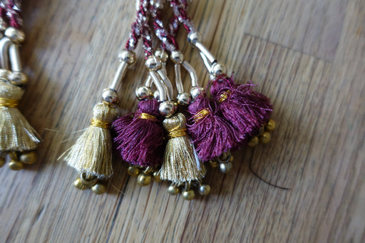 These are approximately 19cm long with deep maroon and gold silk thread tassels and gold bells.