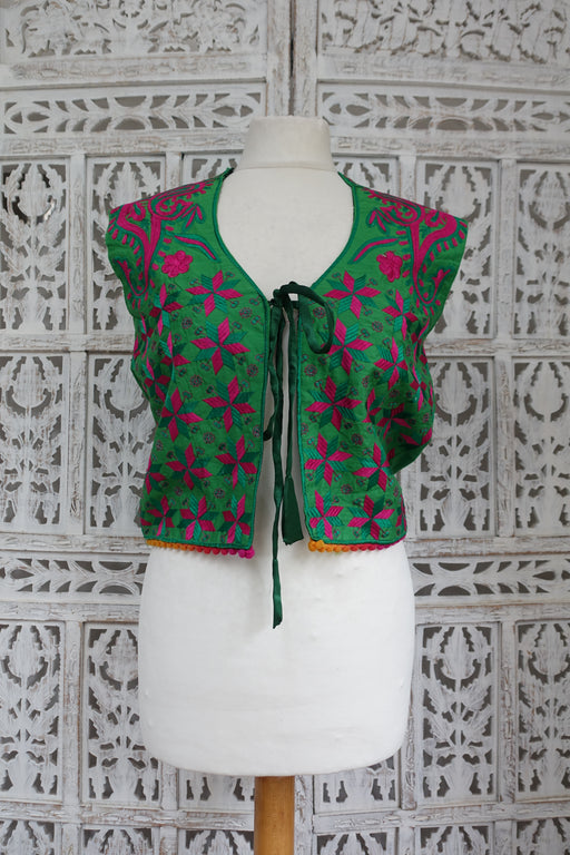 View full detailsGreen Paisely Embroidered Waist Jacket With Ties - UK 12/EU 38 - New