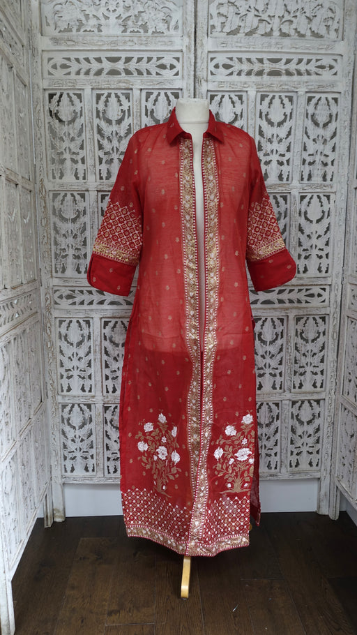 View full detailsMaroon Net Vintage Zardosi Dhabka Net Long Jacket - UK 10/EU 36 -Preloved