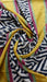 Product detail – This is a vibrant cotton print fabric featuring a striking contrast between a deep black base and a lively ochre pattern.