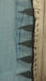 This handcrafted piece features a lovely sky blue fabric with a delicate, natural texture from the cotton weave. The simplicity of the main body is beautifully accented by unique detailing along the edges, including a stylish border of dark blue/black triangles and a playful fringe of blue pom-poms at one end.