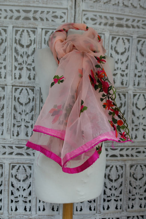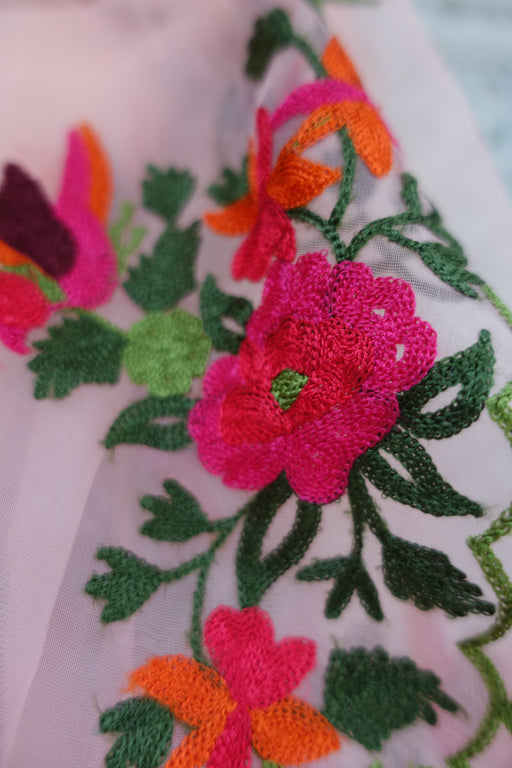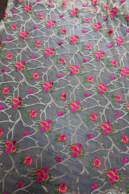 View full detailsCream Net With Bright Pink And Orange Phulkari - New