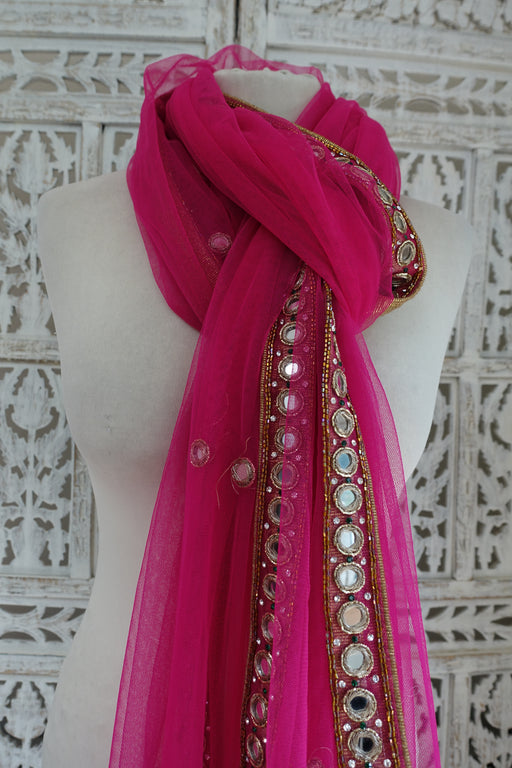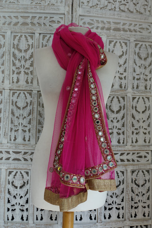 View full detailsPink Net Mirrored Dupatta - Preloved