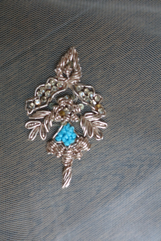 Product Detail – this is made of a fine net embroidered with small flowers in shades of blue. It is trimmed with a wide gold beaded braid. Conditi...