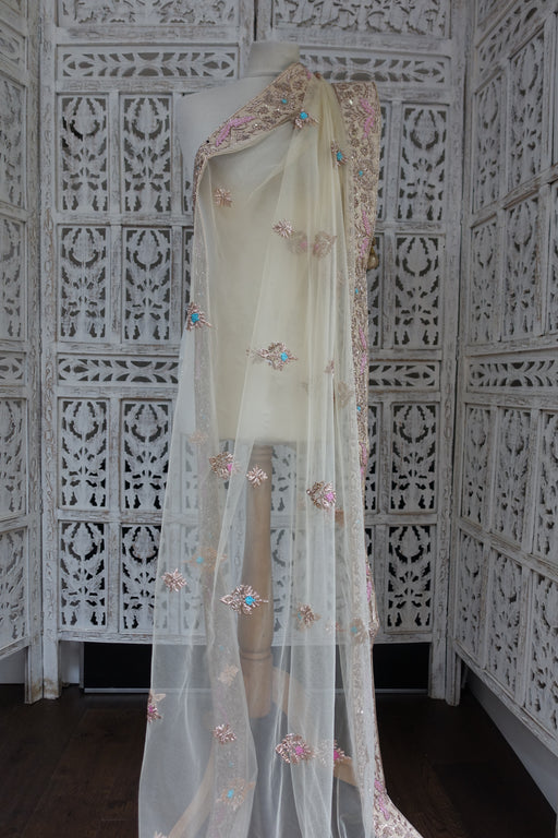 View full detailsCream Net With Heavy Silk Zardosi - New