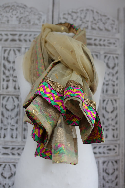 View full detailsCream Net Scarf With Bright Zig Zag Border - New