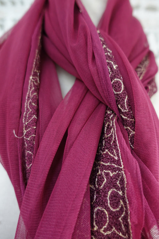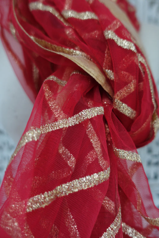 View full detailsDark Red Net Zardosi Vintage Wedding Dupatta - New