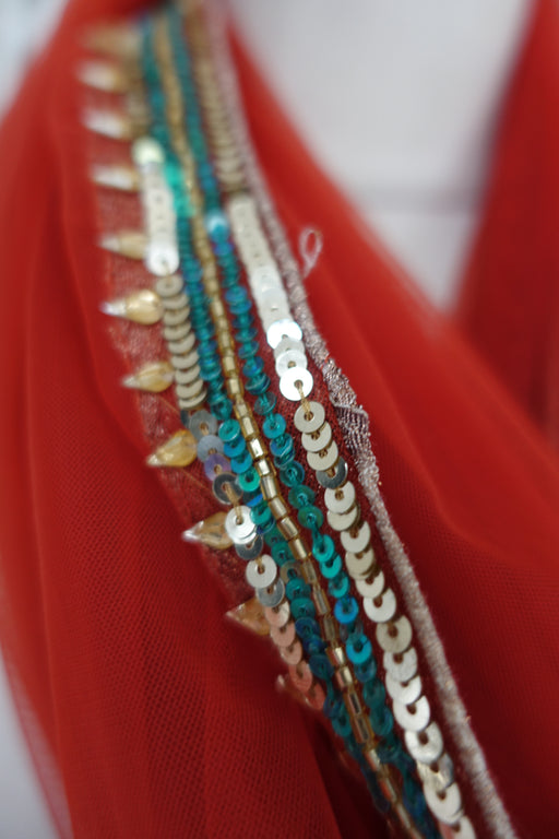 View full detailsRaspberry Red Net And Sequinned Dupatta - Preloved